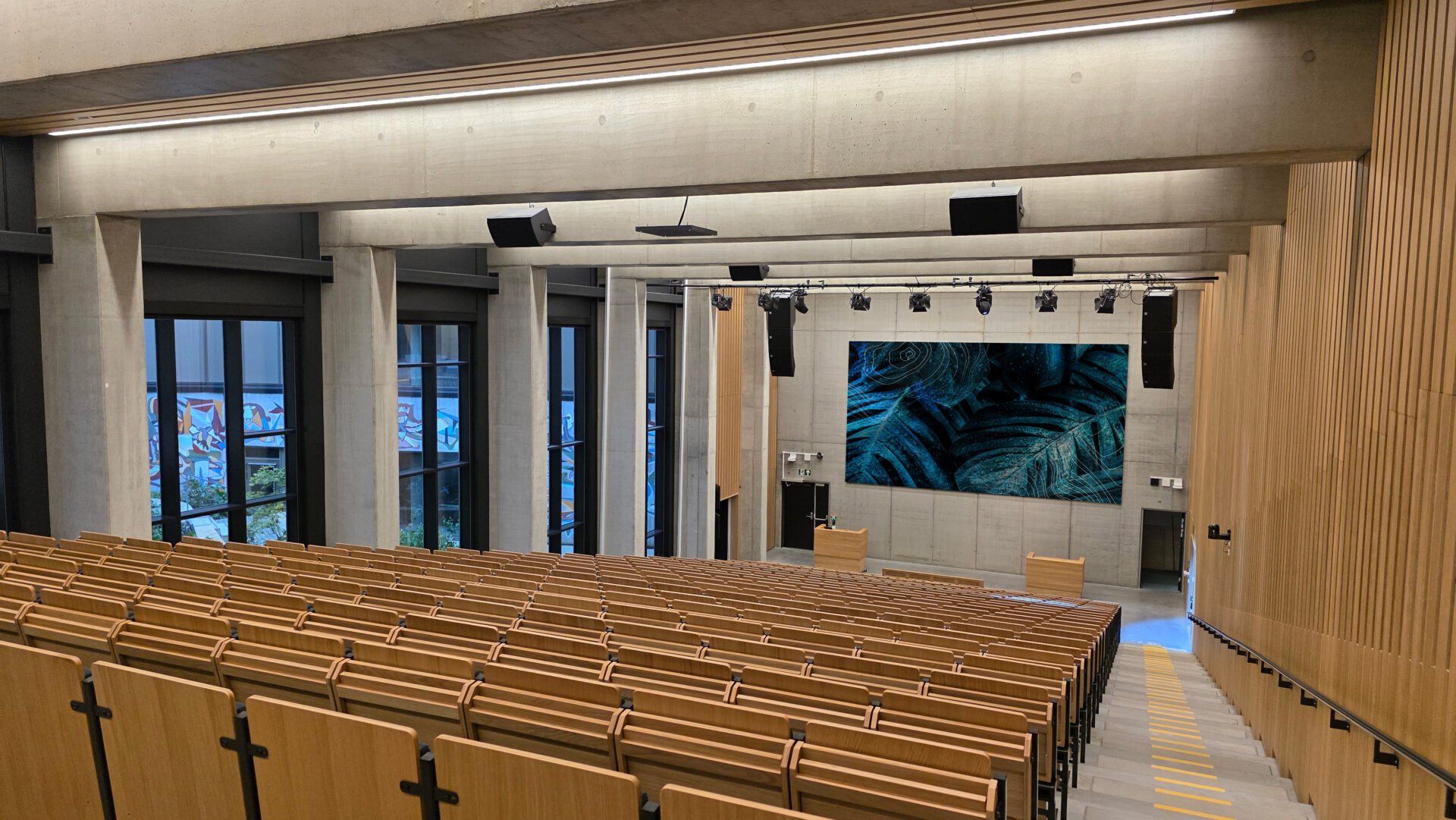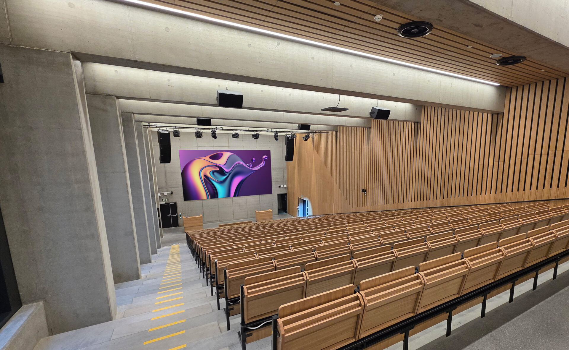 As part of the new Stavanger University Hospital, Helse Stavanger HF wanted a large LED display with high contrast and excellent readability. The screen needed to perform equally well for live presentations and video conferencing, with visuals that look just as good on camera as they do in person.